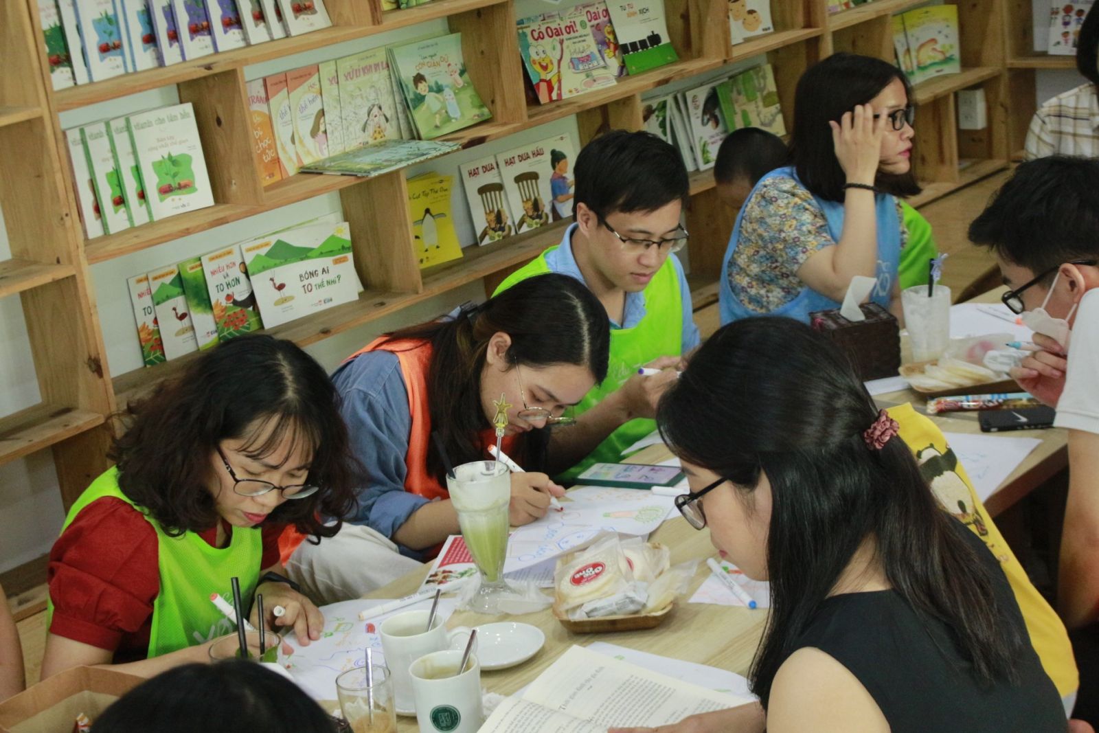 (Các bạn trẻ và ba mẹ đang say mê tham gia workshop “Làm Bạn Cùng Những Trang Sách” tháng vừa qua)