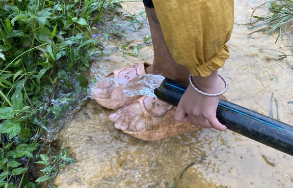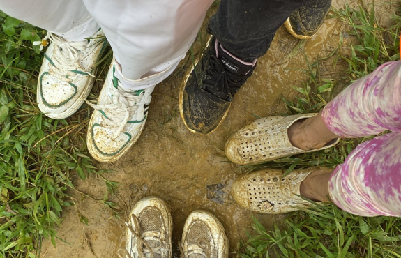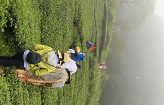 Cũng vì trời mưa, không lên rừng được, nên buổi chiều sau khi buông thư thì chúng mình đi tham quan bản. Leo đồi chè giữa trời mưa, ai cũng được dịp vồ ếch, chân lấm tay bùn.
