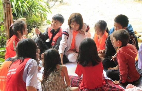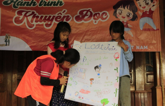 Đầu tiên, là đến homestay A Páo, tại đây chúng mình được giao lưu với các em nhỏ dân tộc H.Mông. Cũng tại đây buổi chia sẻ về khuyến đọc và văn hoá đọc được diễn ra. Các em ờ đây còn nhỏ, chưa hiểu hết ngôn ngữ tiếng kinh mình, nhưng nhờ sự kiên trì của đoàn, mà các bạn ấy đã mạnh dạn giao lưu rất nhiều. Cùng vẽ tranh cổ động, cùng thuyết trình. Làm khuyến đọc cho trẻ em vùng cao luôn là một thử thách đối với chúng mình, nhưng Xoxo sẽ liên tục đúc kết, cải tiến để làm sao chương trình ngày một ý nghĩa, mang lại giá trị nhiều hơn trong từng chuyến đi.