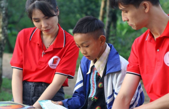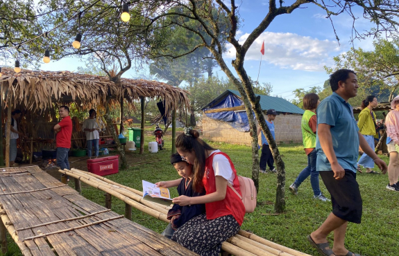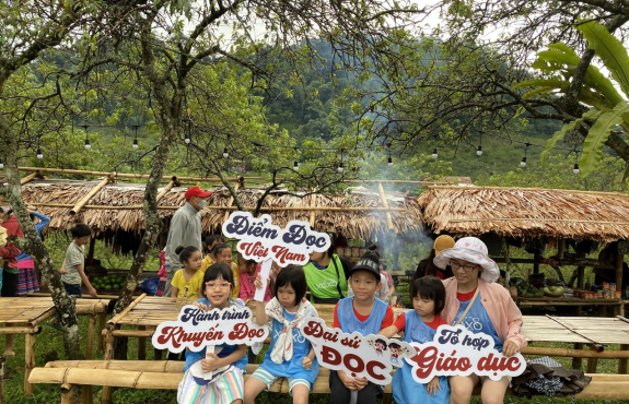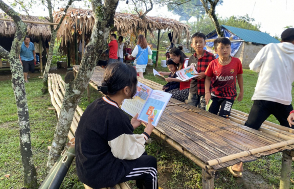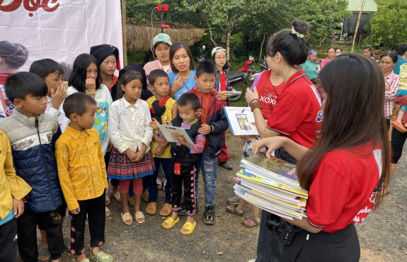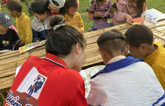 Chiều đến, chúng mình được những bản nhỏ và người dân bản chào đón rất nhiệt tình. Những giây phút sẻ chia về sách, những trò chơi cùng với nhau rồi ngồi đọc sách cùng nhau. Đây đều là những trải nghiệm lần đầu tiên trong đời của các bạn nhỏ trong bản. Hóa ra đọc sách, chơi với sách lại vui như vậy!