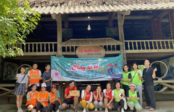 Tháng 6, Xoxo đã cùng đoàn về Làng Cội - một vùng đất yên bình, tràn ngập cây cối, đá quý và năng lượng yêu thương. Cả đoàn đã cùng nhau làm Khuyến đọc lan tỏa văn hóa đọc tới người dân và bạn nhỏ tại Làng Đát, xã Đại Đồng; nghỉ ngơi, tham quan hồ Thác Bà - được ví như Hạ Long trên núi cao của vùng Tây Bắc, tham quan Làng Cội và lắng nghe chia sẻ của cô chú Hằng Phà về sự hình thành của Làng. Hòa mình vào không khí tuyệt vời của Làng Cội, cả đoàn đã cùng nhau thiền, “tắm”rừng, tham gia các hoạt động giáo dục trải nghiệm, giao lưu chia sẻ để hiểu mình và hiểu những người xung quanh hơn.